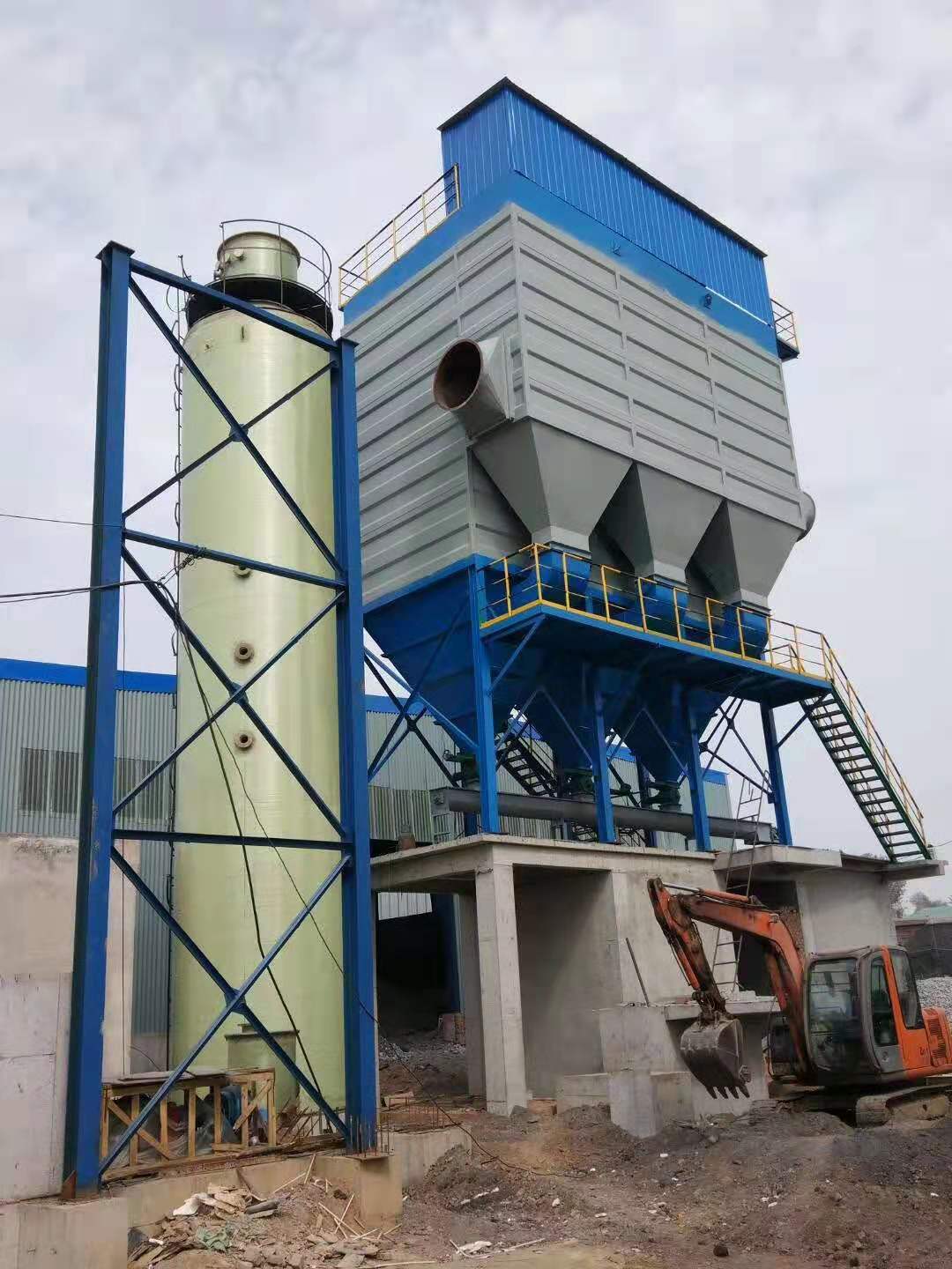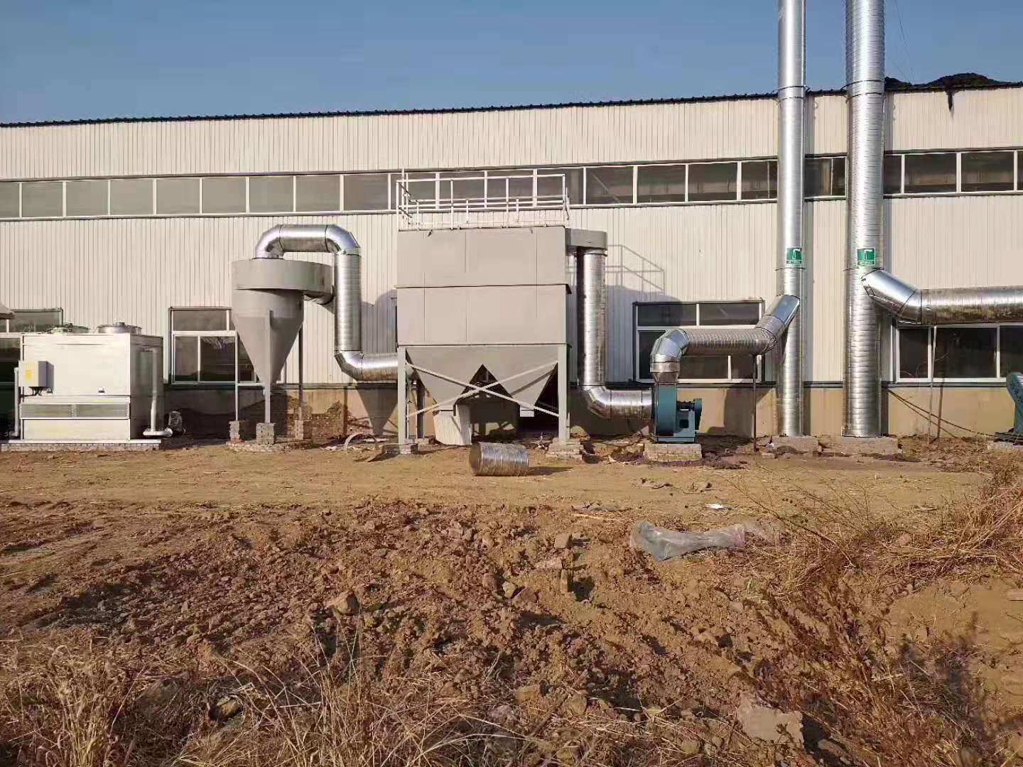 生物质锅炉生产过程中产生的烟气,使用布袋除尘器进行处理。生物质锅炉产生的烟气粉尘由吸尘管道进入旋风除尘器,此时烟尘中的大颗粒在旋风除尘器的离心力的作用下进行分离,大颗粒粉尘由旋风除尘器排出,细小颗粒粉尘进入布袋除尘器。经过滤袋过滤,通过脉冲吹打将粘附在布袋表面的粉尘先集中在除尘器的灰斗内,利用下料控制器进行回收或利用。经布袋除尘器处理过后的净气通过风机由烟囱排入大气。