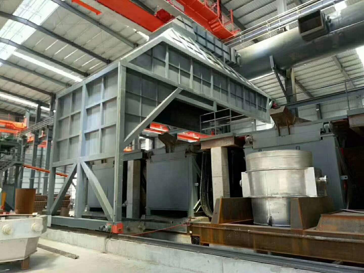 中频炉除尘系统一般是采用全封闭型烟罩,可的将中频炉的整个冶炼过程中产生的烟气捕集,同时弥补了在加料和出钢过程中不能捕集的缺点。中频炉冶炼烟气除尘采用全密闭的集烟形式,辅以液压加料车加料、钢包车出钢,可实现烟气在加料期、冶炼期、出钢期全过程捕集。加料车的使用提高了加料作业效率,减少了人工操作。钢包车的使用除满足环保除尘效果外,降低了漏钢穿炉等出钢事故发生的概率,使中频炉出钢。