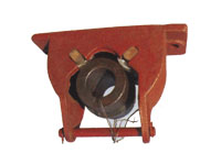 尘中轴承是一种由托轮轴,托轮,密封套构成的托轮部件和支座,垫片,锁定套,开口销,销轴,挡圈,护罩等所组成的电除尘器新型尘中轴承。托轮呈圆柱状,与托轮轴间隙配合,设有密封套相吻合的沟槽;托轮轴中间有一段狭径,两端设有挡圈槽和开口销孔。支座底板呈长方形,两端有固定螺栓孔,中间有排泄粉尘用的矩形孔,两侧墙板对称,墙板上有斜槽,锁定套孔,及销轴安装孔等,通过挡圈,锁定套,销轴,垫片,开口销能安装托轮部件和护罩。