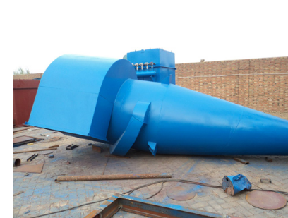 含尘气体由总进气管进入气体分布室,随后进入陶瓷旋风体和导流片之间的环形空隙。导流片使气体由直线运动变为圆周运动,旋转气流的绝大部分沿旋风体自圆筒体呈螺旋形向下,朝锥体流动,含尘气体在旋转过程中产生离心力,将密度大于气体的尘粒甩向筒壁。尘粒在与筒壁接触,便失去惯性力而靠入口速度的动量和向下的重力沿壁面向下落入排灰口进入总灰斗。旋转下降的外旋气流到达锥体下端位时,因圆锥体的收缩即以同样的旋转方向在旋风管轴线方向由下而上继续做螺旋形流动(净气),经过陶瓷旋风体排气管进入排气室,由总排气口排出,总排气管可以根据需要放置在侧向或顶部。