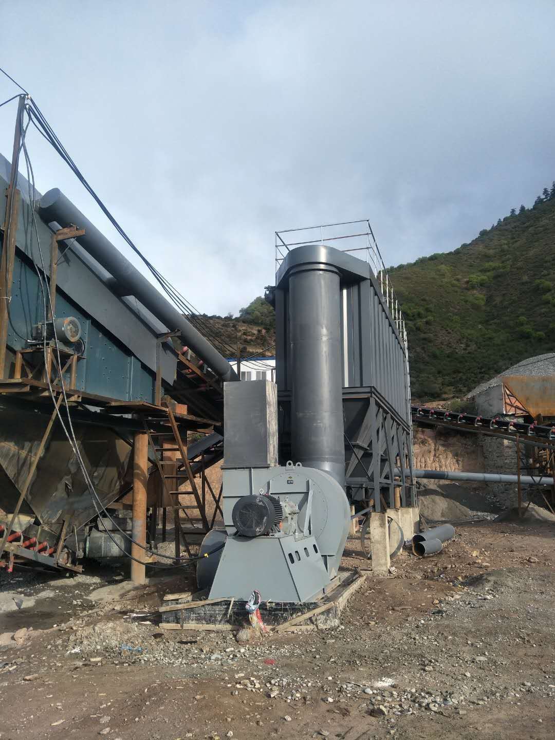 我公司为石料厂配套的除尘器为脉冲布袋式,此设备具有清灰,透气性好,除尘优于其他型号的除尘器。