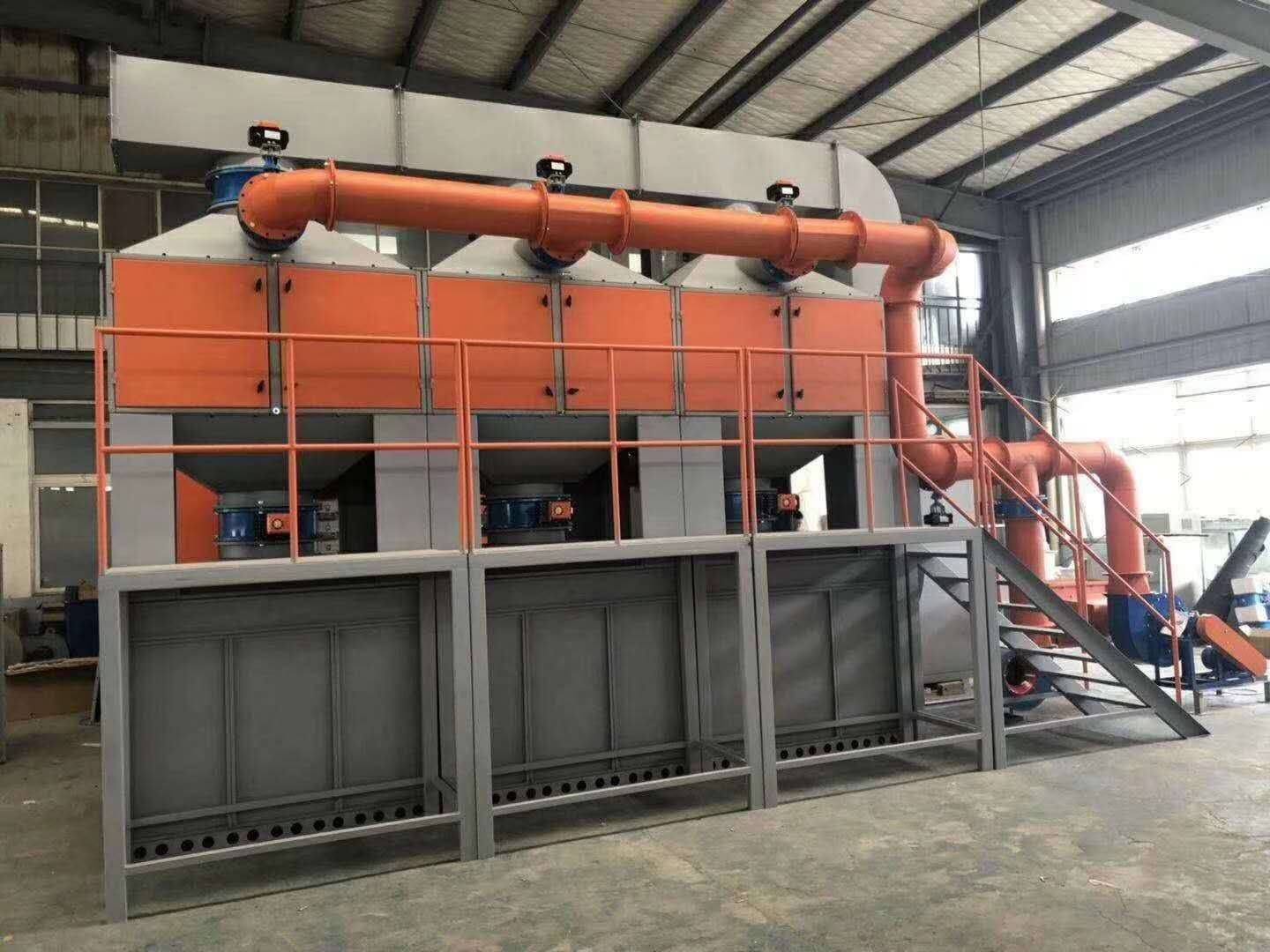 铸造厂废气处理设备:催化燃烧废气处理设备包括吸风收集罩、废气收集管道、低温等离子+复合光催化工业废气净化器、主风机若干吸风收集罩根据铸造生产中废气源数量设置于铸造生产线上且与废气收集管道的进气端连通,废气收集管道的出气端与净化器的进气口连通,净化器的出气口与通过排气装置与大气连通。解决了铸造过程烟尘及废气收集和处理,了现有的用湿法处理铸造废气存在的处理工艺复杂等问题。