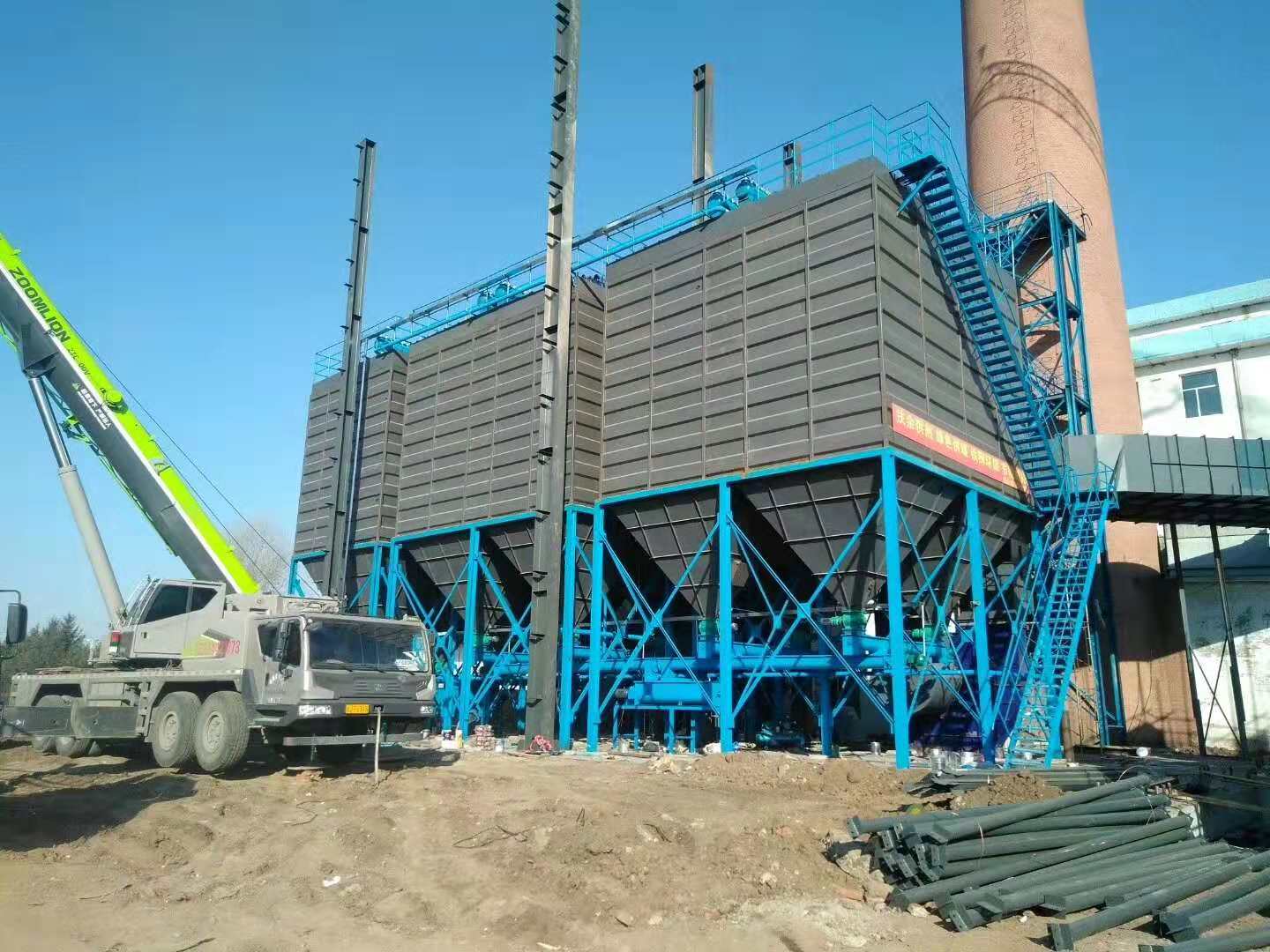 5. 除尘站设置工艺管道、粘附性烟气吸附装置、除尘器、平衡阀、预喷涂装置、卸输灰装置、引风机组、烟囱、电气控制等,风机采用变频控制。