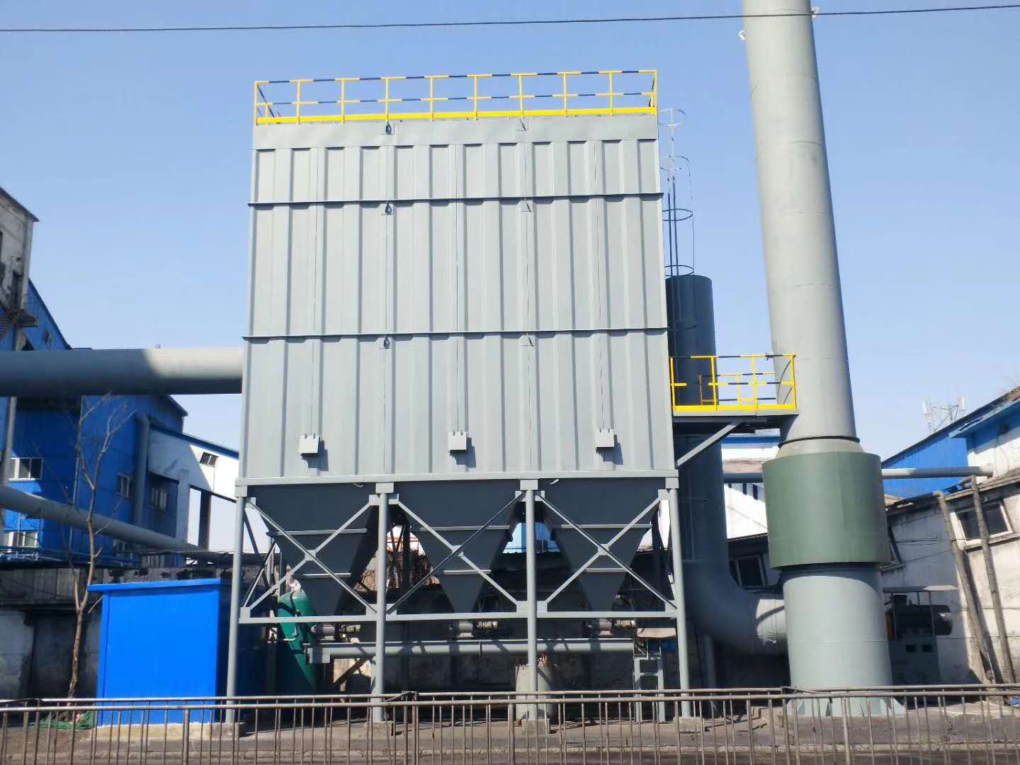 锅炉布袋除尘器由除尘器本体、保护系统、压缩空气系统(包括储气罐、油水分离器、管路)、控制系统(包括仪器仪表、PLC柜、MCC柜、现场操作柜)等组成。