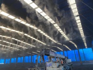 煤棚是企业重要的基础设施,一般每天会频繁的有车辆进出装卸,内部不可避免的产生大量粉尘,人眼既可明显看到,严重影响作业环境,也无法达到环保要求。普通的高压喷雾降尘其原理决定了根本无法达到降尘效果,只能做个摆设。我们自主的智能喷雾降尘系统可以很好的解决煤棚的降尘问题,在多个大型企业应用均取得了令客户满意的效果,也了环保主管部门的肯定