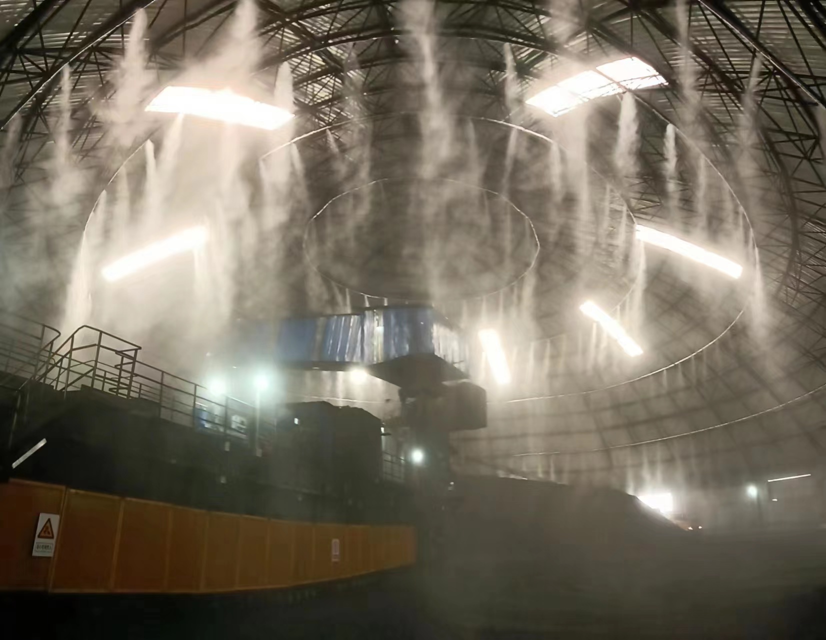 电厂煤场高压喷雾降尘系统是一种新型、抑尘、低能耗的喷雾降尘装置,通过雾化喷嘴进行的雾化喷雾降尘,终达到喷雾降尘抑尘的目的。