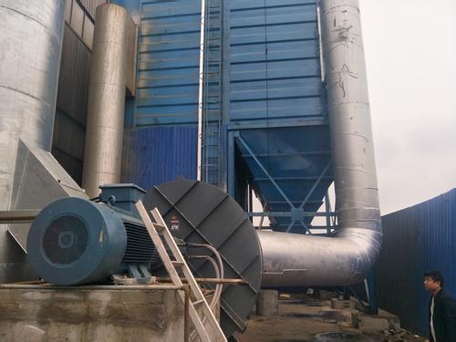 除尘器的气体净化方式为外滤式,含尘气体由导流管进入各单元过滤室,由于设计中袋底离进风口上口垂直距离有足够、合理的净空,气流通过适当导流和自然流向分布,达到整个过滤室内气流分布均匀;含尘气体中的颗粒粉尘通过自然沉降分离后直接落入灰斗、其余粉尘在导流系统的引导下,随气流进入中箱体过滤区,吸附在滤袋外表面。过滤后的洁净气体透过滤袋经上箱体、排风管排出。