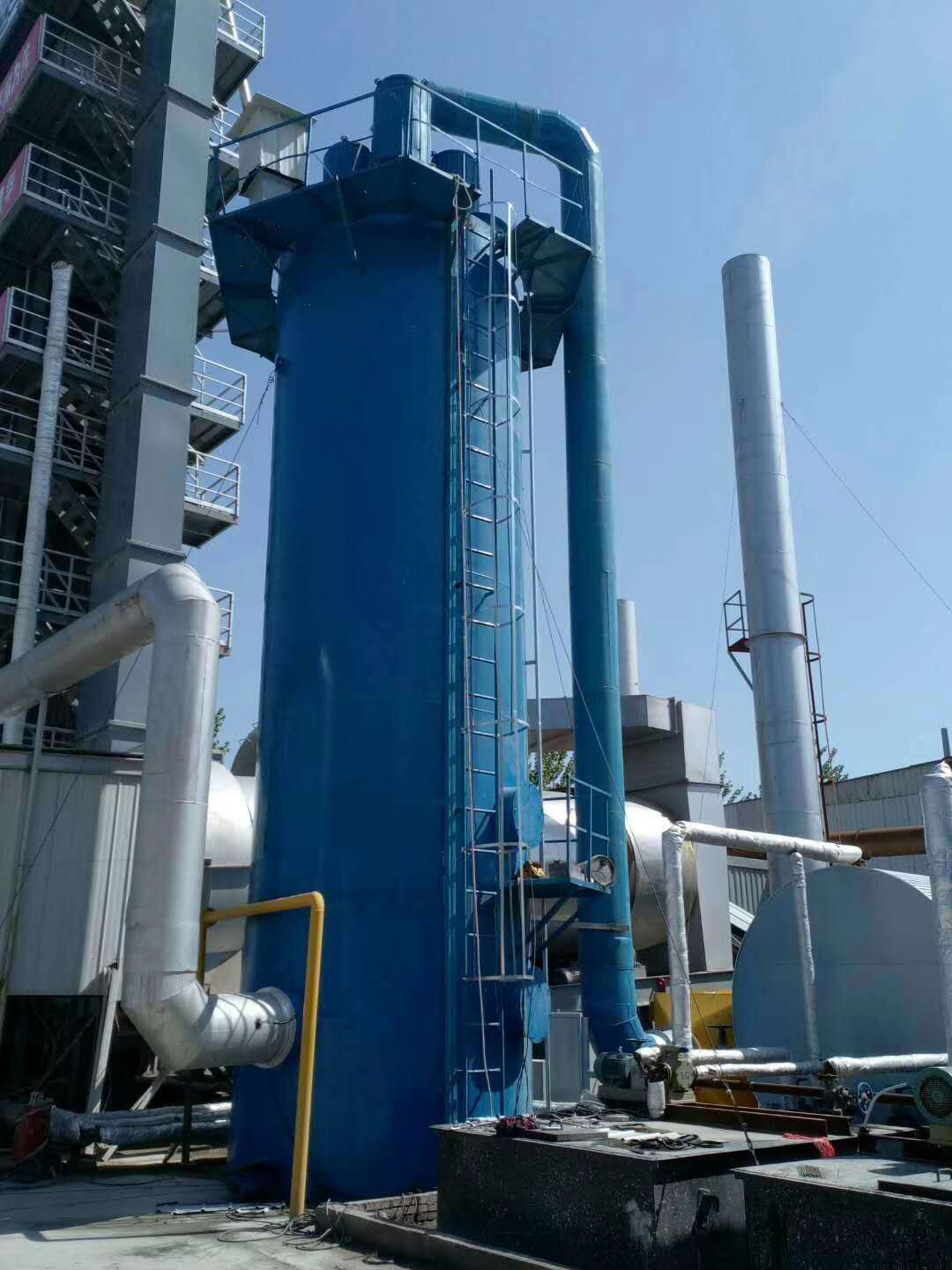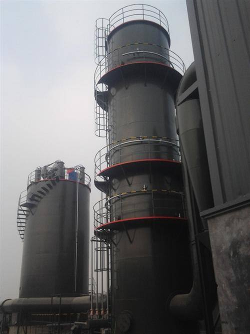 沥青烟气处理使用电捕焦油器,烟气首先经过预处理塔洗涤降温处理。烟气进入预处理塔前的气体温度比较高,其比电阻较高,电捕捕捉困难,通过预处理(水洗降温)把烟气温度降至90℃左右。