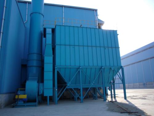 当粉尘气体经进气口进入除尘器,较大的粉尘颗粒因截面积的增大,风速下降,而直接沉降;较小的烟尘、粉尘颗粒被滤袋阻留在滤袋表面。经过滤袋的净化气体,经出气口,由引风机排出。随着过滤的不断进行,滤袋表面的烟尘、粉尘越积越多,滤袋阻力不断升高,当设备阻力达到的限值时,滤袋表面积聚的烟尘、粉尘需及时;在外力(主要是脉冲压缩气体、反吹风气体、等)的作用下,抖动和反吹滤袋,将附着在滤袋表面的烟尘、粉尘,使滤袋,周而复始,实现连续过滤,以设备连续稳定运行。
