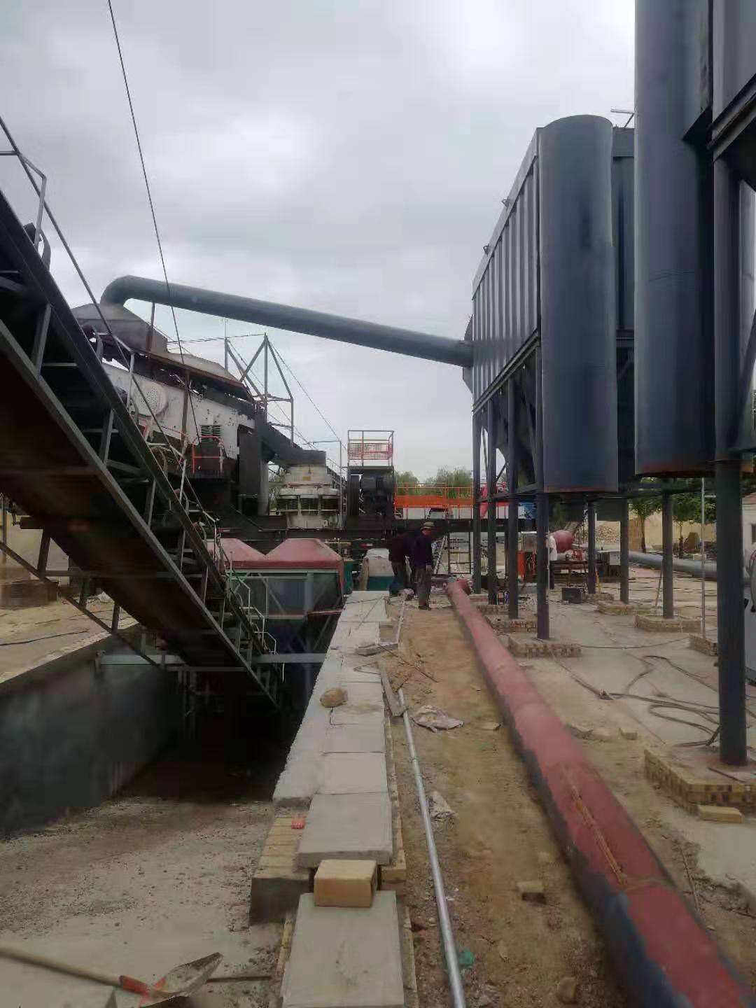 如果较小规模的厂区(室外类型)可以选择与破碎机一体的多室气箱脉冲除尘器,来满足这两个同步工作的工位。