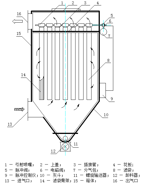 脉冲喷吹单机袋式除尘器结构原理及构造图