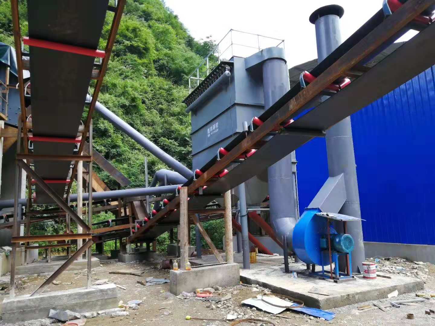 砂石料厂除尘器技术特点、下压进气预设,克服二次扬尘。、除尘。、滤料净面横插式结构,横向换袋,满足楼层不高的室内安装;结构紧凑,比传统式产品减少空间%;由于接纳的脉冲喷洒清灰,使滤料在同样应用环境下的过淋风速较反吹风清灰方式提高倍多,从而减少滤料面积,避免了设备复杂而浮现投资多,占地面积大的情况。